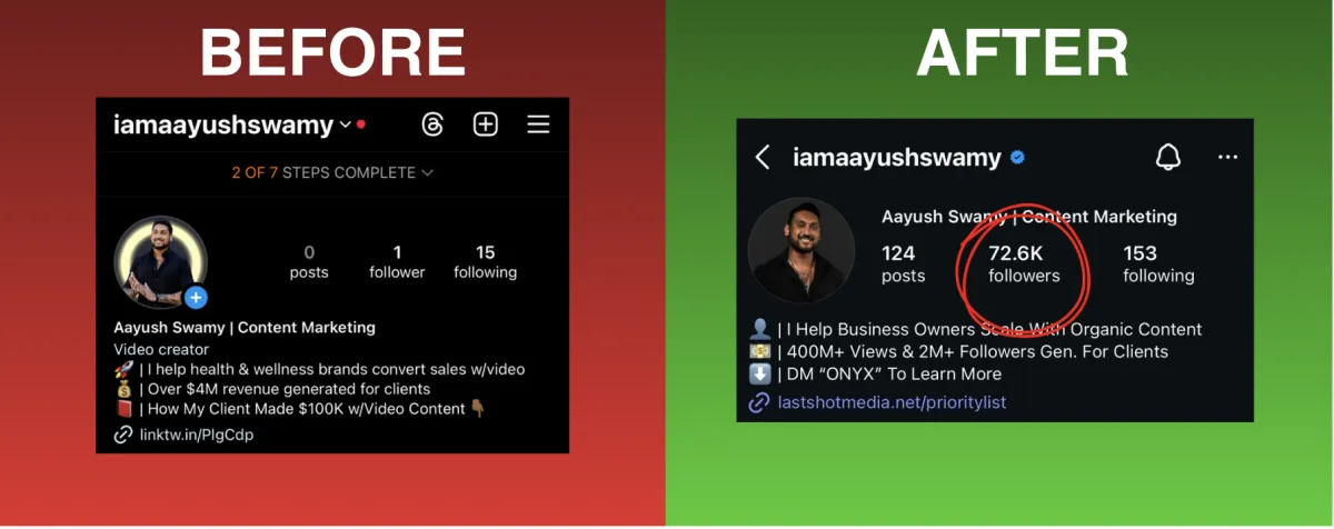 Our clients have grown their personal brands from 0 followers to 1 million followers without a single paid ad which has allowed their business to scale organically proving all you need is better content to attract your ideal customer.